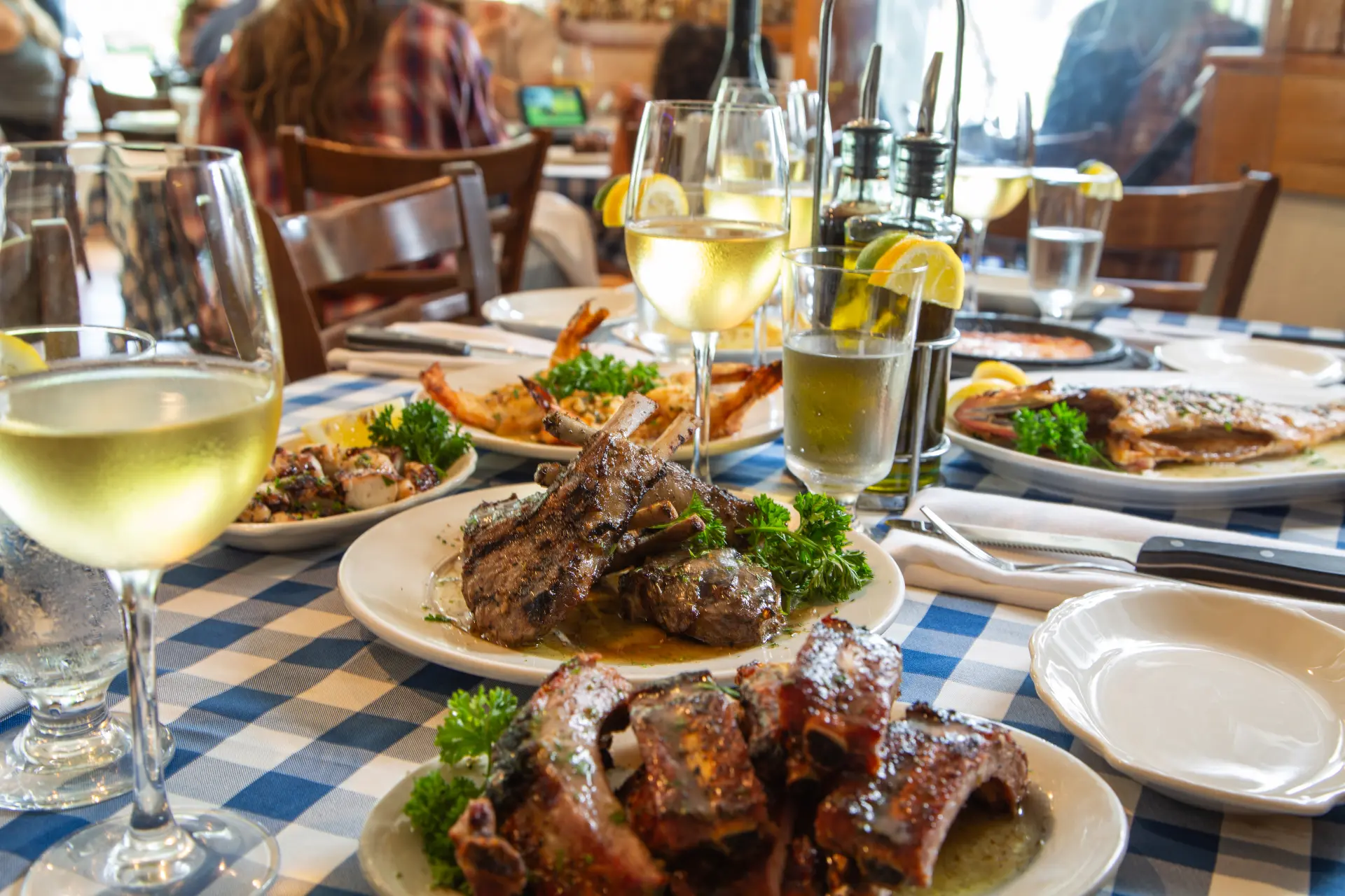 **Full Rack of Baby Back Ribs, char-broiled and seasoned with Lemon, Oregano, and Olive Oil, with Patates Ladoregano and Vegetables